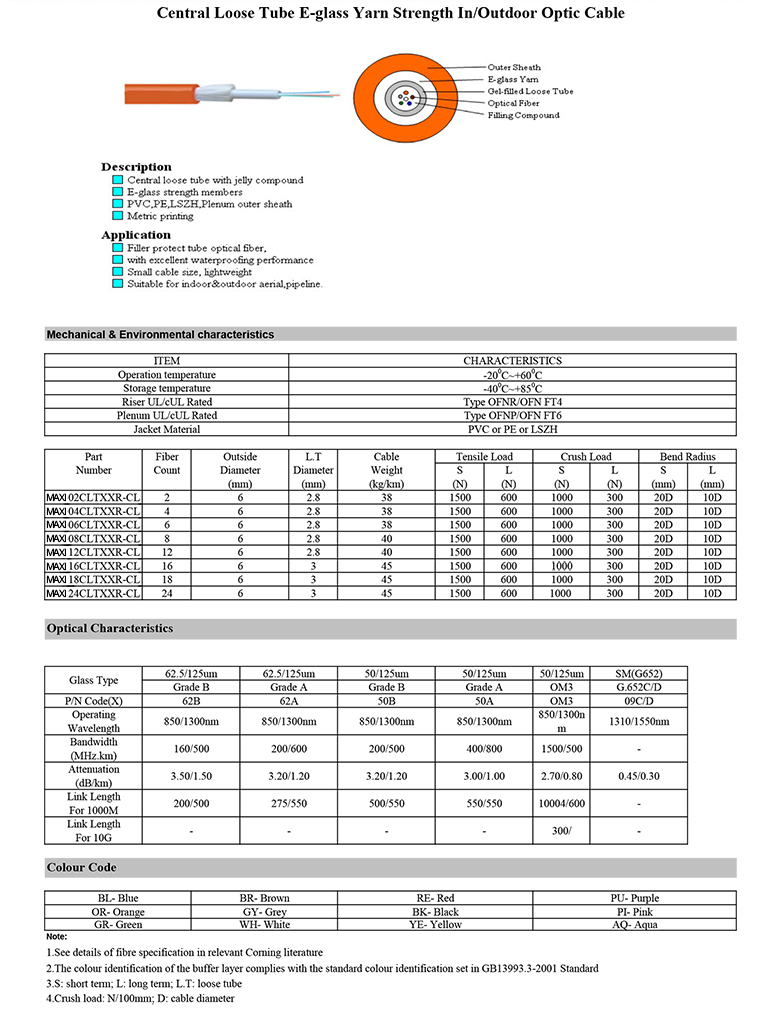 Central Loose Tube E-glass Yarn Strength In/Outdoor Optic Cable