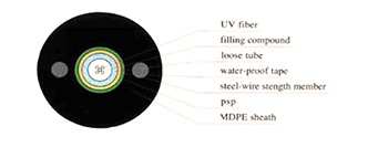 The single-mode or multi-mode fiber is set into a loose tube made by high modulus plastic, and the tube is filled with water-proof compound. Loose tube is wrapped by double-sided corrugated steel tape on the outside. Water-blocking tape in the middle of the strap steel and the loose tube ensures a compact and vertical waterproof fiber optic cable. Two parallel steel wires are placed on both sides to provide the cable with high tensile strength.